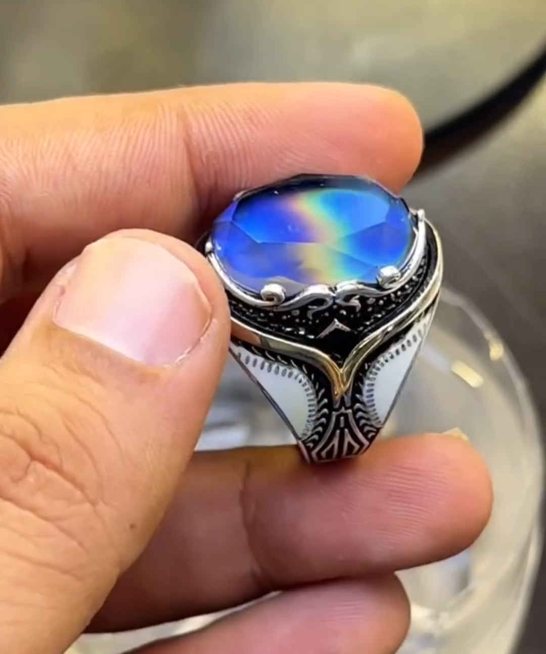 انگوٹھی کا رنگ تبدیل کرنے کے لیے انگوٹھی کو فریزر میں 10min رکھیں یا 1- سرد درجہ حرارت والے ٹھنڈے پانی میں 5min کے لیے رکھ کر پھر Heat دیں نگ (انگوٹھی) اپنا رنگ تبدیل کرنے لگ جاۓ گا ۔۔۔